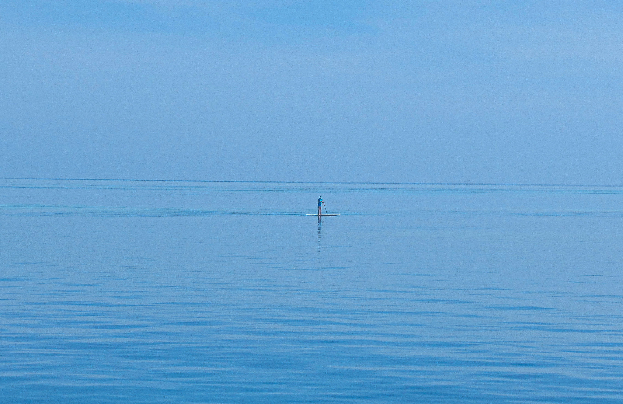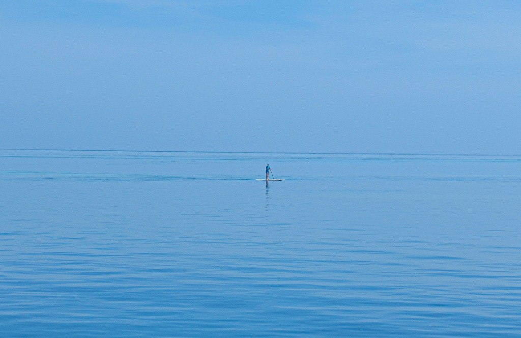 This is a picture taken underwater looking up at the sky and it shows the Snell’s window effect. The Snell’s window is the bright central region of the photograph- it is quite a well-known phenomenon and the dark region at the edge of the photograph is sometimes called Snell’s blanket and that’s when the angle of incidence of the light on the surface of the water is such that no light penetrates the water. It is related to the critical angle for total internal reflection. An easier way to understand this problem is to envisage a point source of light at a depth z in the water -so this inverts the problem but that is ok because the laws of optics are reversible.